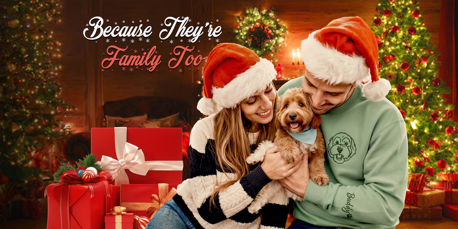 Custom Dog Cat Portrait Embroidered Christmas Sweatshirt Hoodie T-shirt